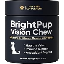 $6.98 (as of February 10, 2026 22:18 GMT -06:00 - More infoProduct prices and availability are accurate as of the date/time indicated and are subject to change. Any price and availability information displayed on [relevant Amazon Site(s), as applicable] at the time of purchase will apply to the purchase of this product.)BrightPup Dog Vision Chews, Dog Vision Supplement with Lutein, Vitamin A/C/E, Bilberry & Omega-3, Supports Eyes Health & Visions Clarity, Bacon Flavor Eye Supplements for Dogs, 30 Soft Chews (1)