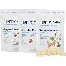 $12.97 (as of March 7, 2026 15:57 GMT -06:00 - More infoProduct prices and availability are accurate as of the date/time indicated and are subject to change. Any price and availability information displayed on [relevant Amazon Site(s), as applicable] at the time of purchase will apply to the purchase of this product.)Happy Wax Pet Scents Mix Premium Scented, Non Toxic, Pet Safe, Odor Eliminating, Dye-Free Soy Wax Melts – 6 Total Oz: Lavender Fields for Dogs, Sugared Fruit for Cats and Teakwood Trails for Pets