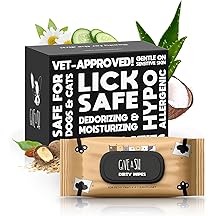 $14.99 (as of November 10, 2025 21:02 GMT -06:00 - More infoProduct prices and availability are accurate as of the date/time indicated and are subject to change. Any price and availability information displayed on [relevant Amazon Site(s), as applicable] at the time of purchase will apply to the purchase of this product.)Lick-Safe Pet Wipes for Dogs & Cats - Vet-Approved & Hypoallergenic - Cleans Mud, Odors & Dander - Wipes for Paws, Face & Butt - 10% to Charity - Earth-Friendly & Unscented Cat Cleaning - Pack of 100