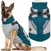 $16.99 (as of March 6, 2026 21:36 GMT -06:00 - More infoProduct prices and availability are accurate as of the date/time indicated and are subject to change. Any price and availability information displayed on [relevant Amazon Site(s), as applicable] at the time of purchase will apply to the purchase of this product.)IECOii Dog Coat for Large Dogs Waterproof Dog Winter Jacket with Harness Built in, Turquoise Green - XXLarge, Thermal Warm Fleece Lined, Reflective Dogs Jackets for Cold Weather Hiking, Pitbull
